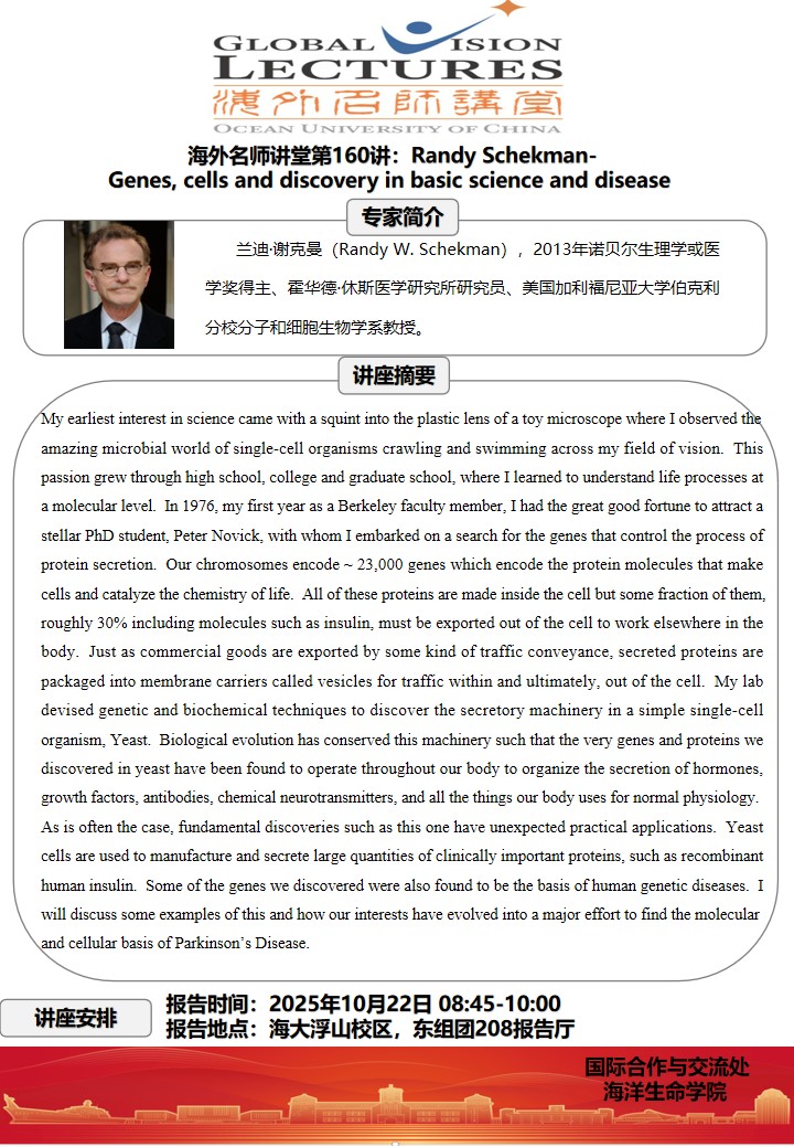 海外名师讲堂第一百六十讲:Randy Schekman- Genes, cells and discovery in basic science and disease
