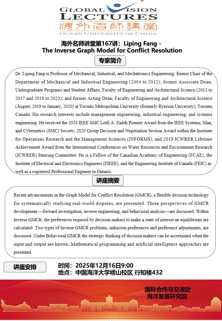 海外名师讲堂第一百六十七讲:Liping Fang - The Inverse Graph Model for Conflict Resolution